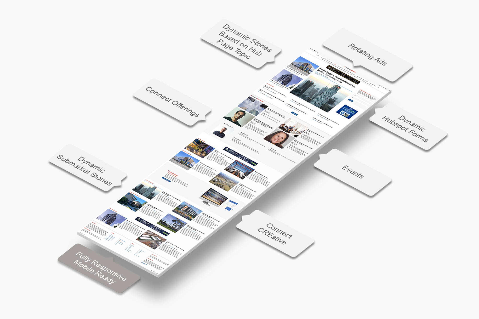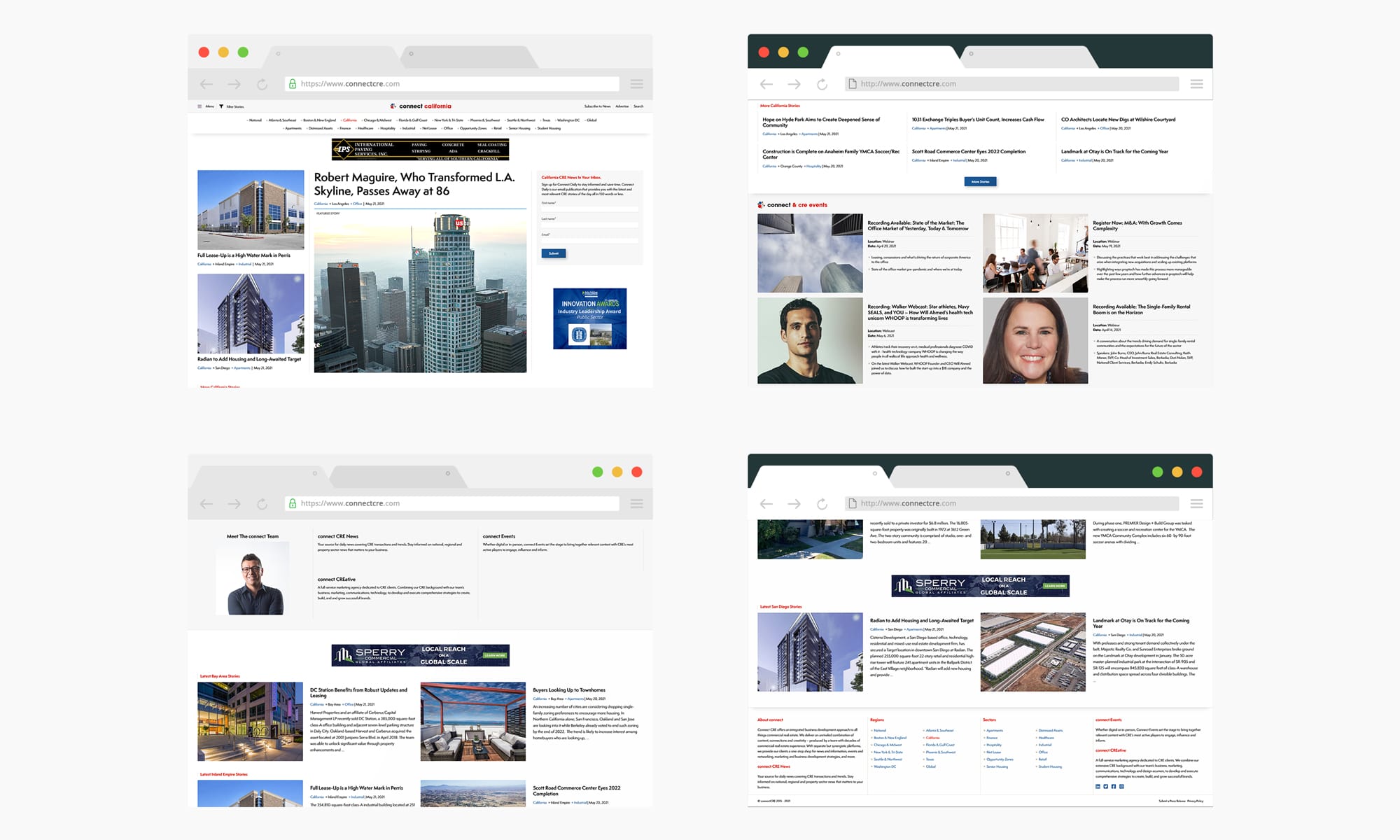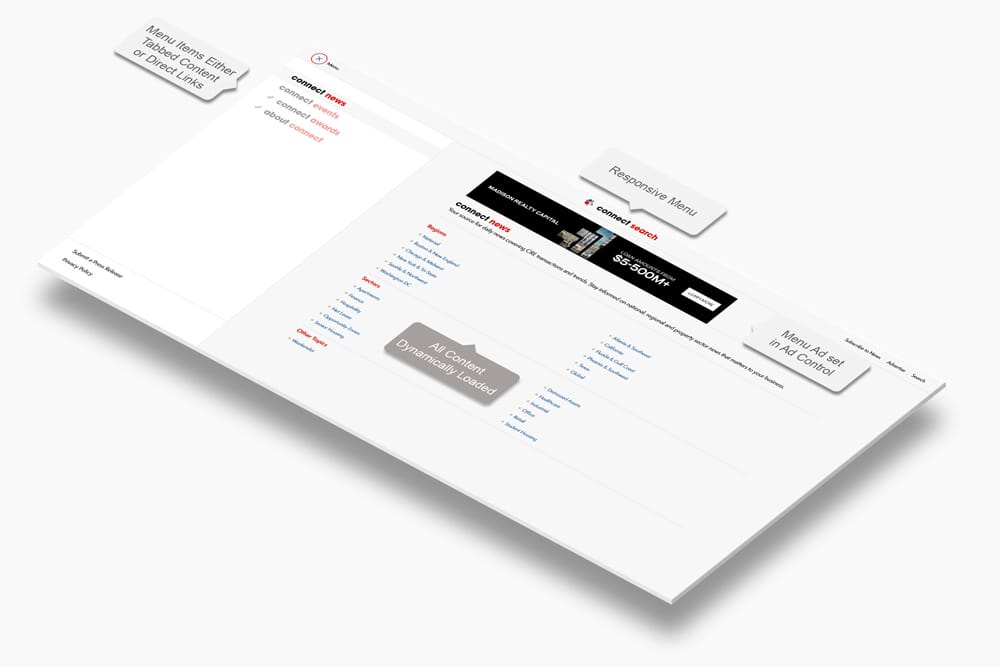 ConnectCRE.com overhaul showcased my role as a Creative Director, merging design innovation, technical skills, and project leadership. At ConnectCRE I oversaw multiple conferences attended by thousands of people, rebranded the entire company, managed the creation of a new website, all while creating and leading teams on creation for our clients at Connect Creative, our digital design bucket of ConnectCRE.